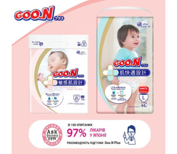 Підгузки Goo.N Plus - це новий рівень піклування про шкіру Ваших крихіток.