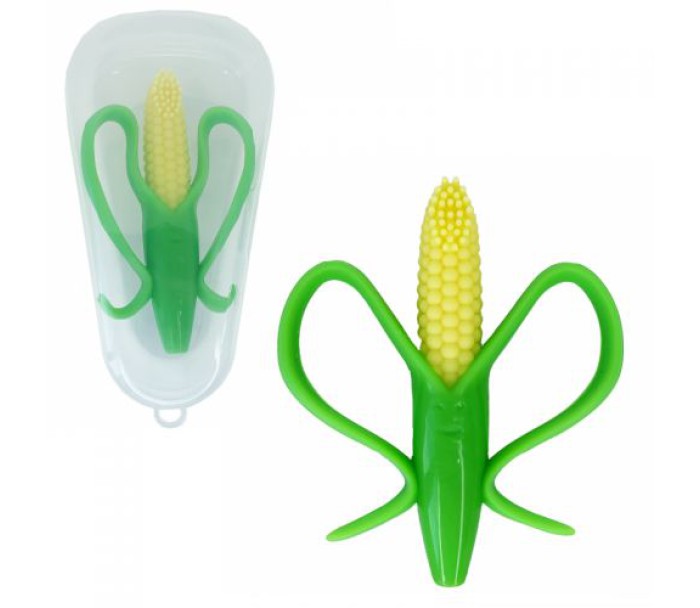 Прорізувач для зубів у вигляді кукурудзи. Стилізований під зубну щітку з м'якими силіконовими щетинками. Має зручні для дитячої долоньки ручки. М'яко масажує ясна малюка, полегшує дискомфортні явища в період прорізування зубів. Виготовлений з безпечного силікону.