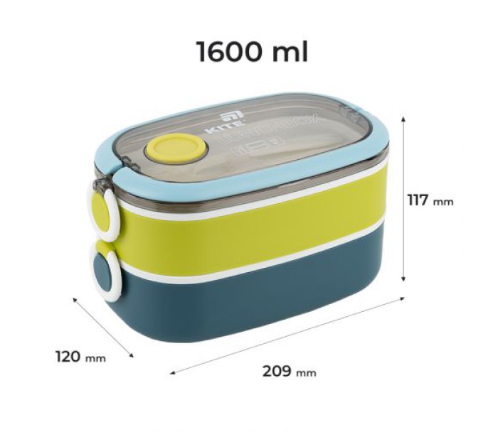 Ланчбокс подвійний Kite K25-1181 1600 мл — універсальний та місткий контейнер для повноцінного обіду. Ідеальний для школи, офісу, прогулянок, пікніків і подорожей. Завдяки двом відділенням із додатковими кришками, ви самі вирішуєте, скільки взяти з собою: одну ємність чи обидві одразу.