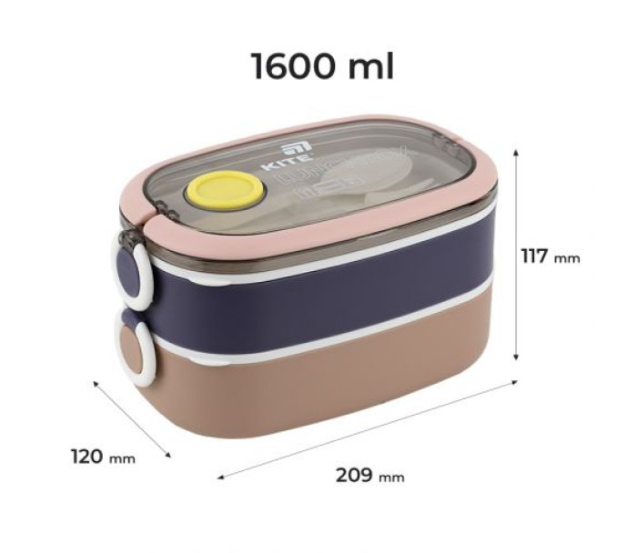 Ланчбокс подвійний Kite K25-1181 1600 мл — універсальний та місткий контейнер для повноцінного обіду. Ідеальний для школи, офісу, прогулянок, пікніків і подорожей. Завдяки двом відділенням із додатковими кришками, ви самі вирішуєте, скільки взяти з собою: одну ємність чи обидві одразу.
