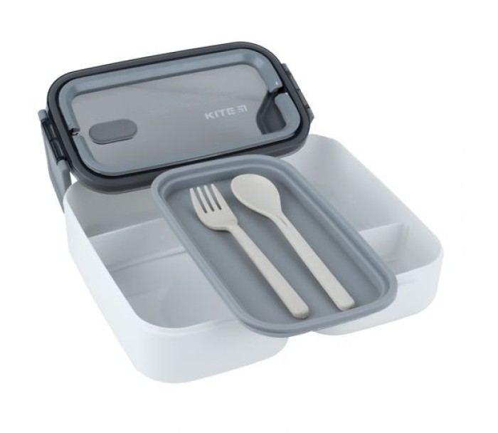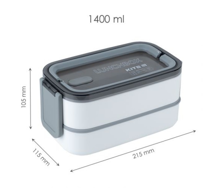 Ланчбокс Kite зроблений з харчового пластику. Бокс призначений для зберігання ланчу. Складається з двох частин, доповнений столовим приладдям. Він щільно закривається. Ланчбокс також можна використовувати як лоток для зберігання їжі в холодильнику. Об'єм 1400 мл.