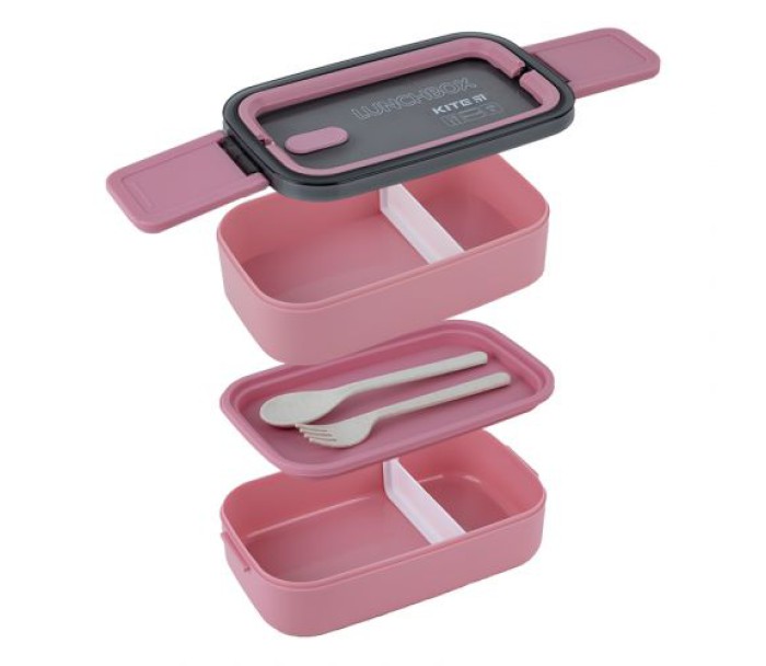 Ланчбокс Kite зроблений з харчового пластику. Бокс призначений для зберігання ланчу. Складається з двох частин, доповнений столовим приладдям. Він щільно закривається. Ланчбокс також можна використовувати як лоток для зберігання їжі в холодильнику. Об'єм 1400 мл.
