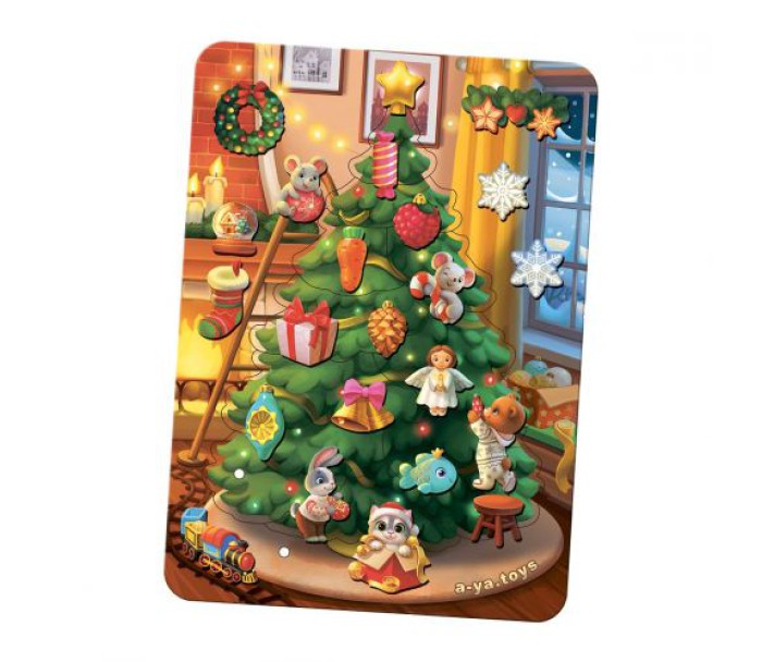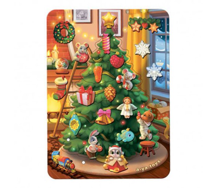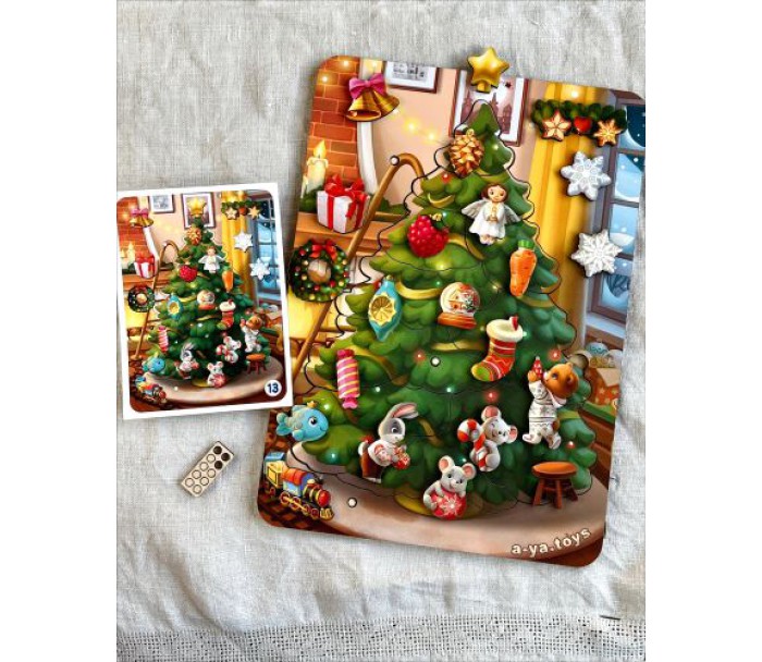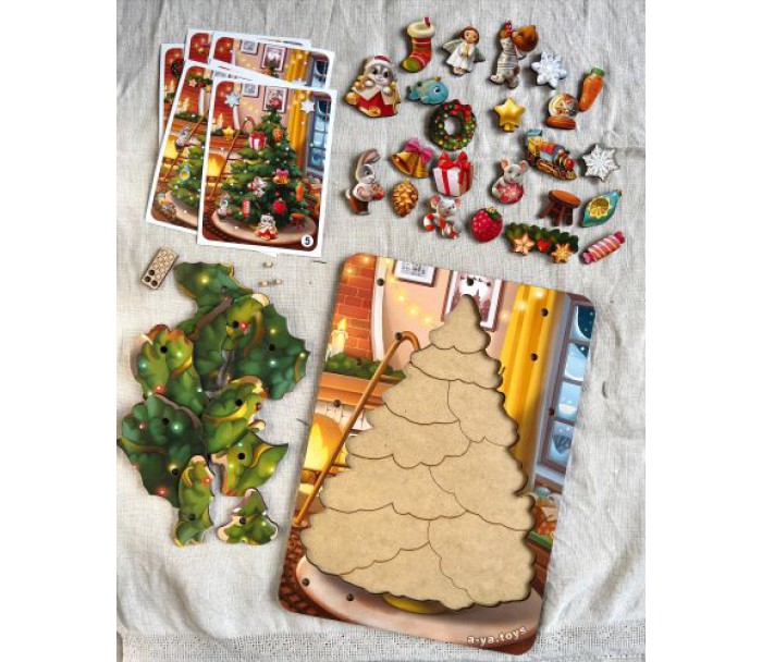 Комплектація: Ялинка з 10 деталей, 23 іграшок та 16 карток