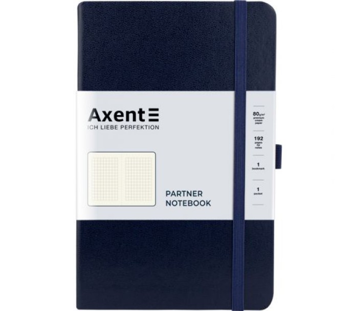 Книга записна Axent із серії Partner призначена для тих, хто цінує класичний діловий дизайн і максимальну функціональність. Може використовуватися для записів, для планування, як недатований щоденник, для будь-яких ділових і творчих завдань. Записна книжка Partner має тверде переплетення з вінілу, завдяки чому навіть з часом зберігає акуратний і презентабельний вигляд. Якісний папір щільністю 80г/м2 благородного кремового відтінку забезпечує комфортне письмо, добре вбирає чорнило. Папір у клітинку, зручно робити будь-які записи, малювати, креслити. Розміри клітинки складають 5х5 мм. Містить 96 аркушів, формат А5- дозволяє фіксувати багато інформації, і при цьому зручно носити записну книжку з собою. Закладка дозволяє швидко знайти і відкрити потрібні сторінки. Кишеня на форзаці буде надійно зберігати нотатки, чеки, картки та інші важливі дрібниці. Петля для ручки не дає ручці загубитися і випасти, немає необхідності носити ручку між сторінок і псувати зовнішній вигляд записної книжки.