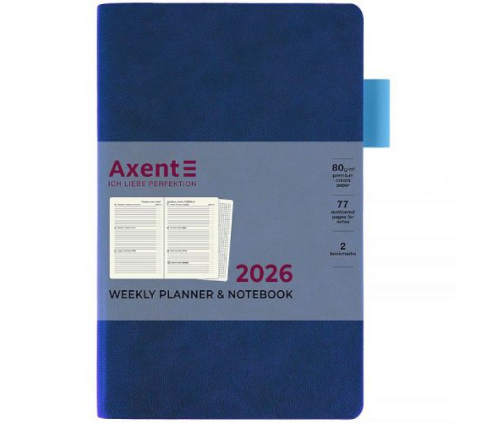 Щотижневик Axent формату А5- із серії Muse з м'якою обкладинкою та кольоровим зрізом.. Використовується для щоденних записів, а також ділових та творчих задач.