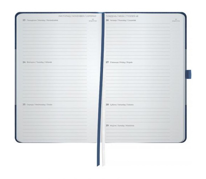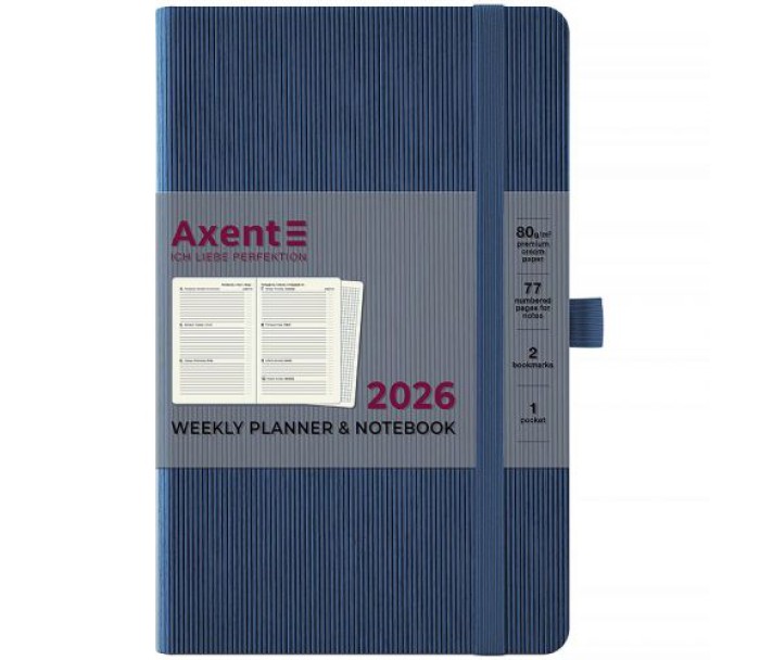 Щотижневик Axent формату А5- із серії Lines з твердою обкладинкою. Використовується для щоденних записів, а також ділових та творчих задач.