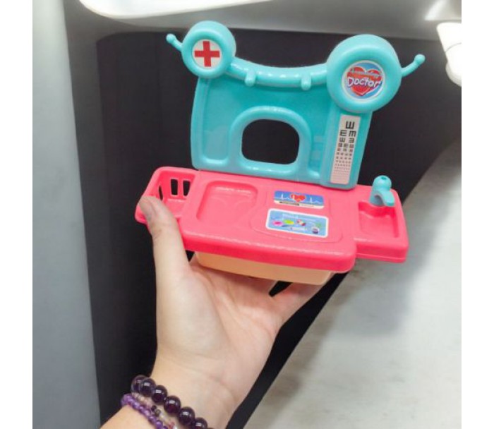 Набір у вигляді лікарського столика, що обладнаний спеціальним краном і кошиком для інструментів. На столику розташована таблиця для перевірки зору, яка дозволяє маленькому окулістові проводити різноманітні перевірки. У комплекті поставляються окуляри та два інструменти.