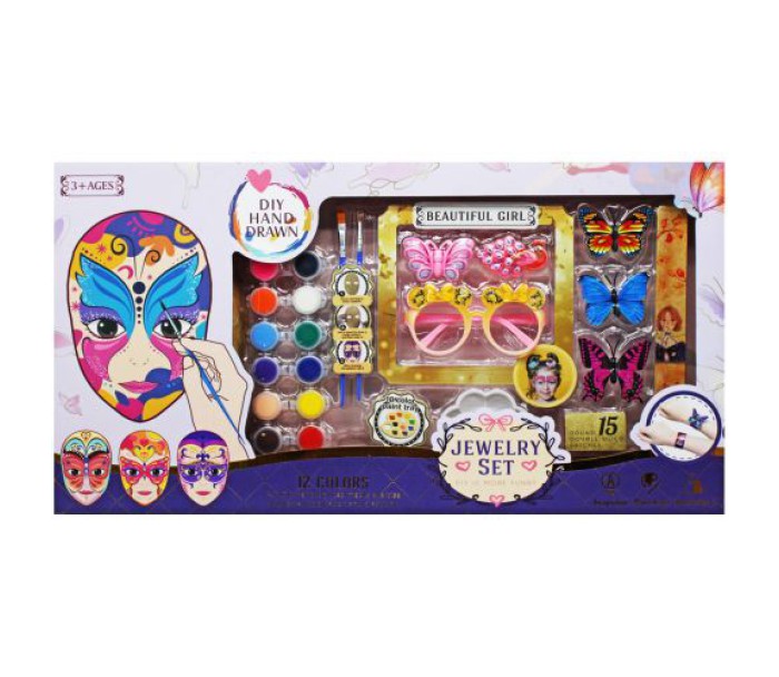 Комплектація: Маска, 12 кольорів фарби, палітра, 2 пензлики, окуляри, браслет, 2 шпильки, прикраси