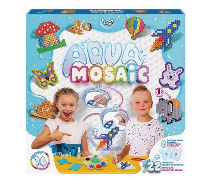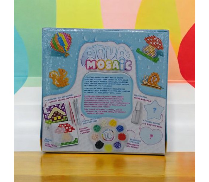 Комплектація: 22 схеми для квадратної основи, квадратна основа, олівець-аплікатор та пінцет, органайзер для кульок, кульки у 16 кольорах, контейнер-срей для води, 2 фігурні форми