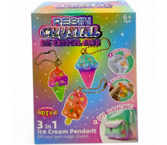 Набір для творчості з допомогою якого можна створити прикраси з епоксидної смоли. У комплекті є все необхідне для трьох невеличких прикрас розміром приблизно 5 см. 2 баночки з епоксидною смолою, 4 види блискіток, елементи декору, ланцюжки, молд силіконовий на 3 фігурки, мірна склянка, склянка для змішування, пінцет пластиковий, деревʼяні лопатки, рукавички, детальна інструкція. Виготовлено з якісних та безпечних матеріалів. Для дітей старше 6 років.