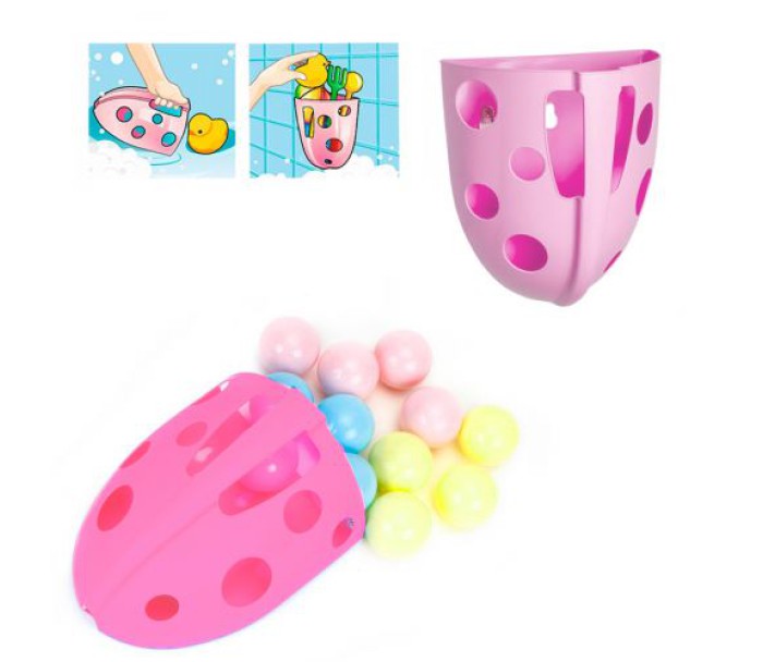Даний набір включає в себе органайзер-кошик для ванної та 12 пластикових кульок для сухого басейну (діаметр кульки - 5 см.). Органайзер можна кріпити до поверхні за допомогою присосок. Розмір кошика - 23х12х19. Виготовлено з якісного пластику.