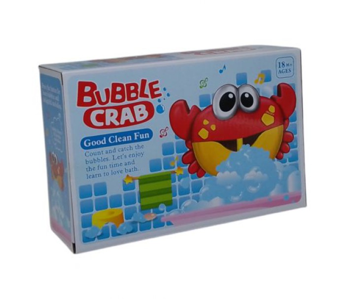 Іграшка для ванної "Музичний краб" являє собою забавного пластикового краба, який кріпиться до стіни за допомогою присооск. В іграшку вставляється насадка і заливається мильна рідина. Потім краба потрібно включити, і він почне пускати мильні бульбашки, граючи при цьому веселу мелодію. У комплекті: інструкція англійською мовою.