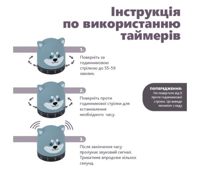 Розмір: 60*60*67 мм Матеріал: ABS пластик з прогумованим покриттям Металевий механізм намотування, батарея не потрібна Безперервно регульований інтервал часу до 60 хв, звуковий сигнал після закінчення часу Упаковка: Індивідуальна кольорова коробка з вікном