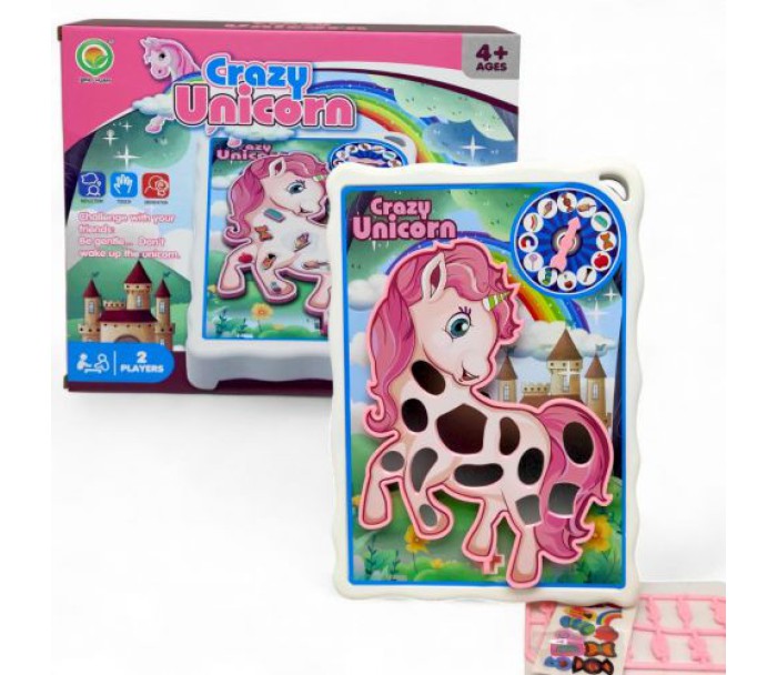 Інтерактивна гра головна ціль якої — обережно забрати речі з отворів єдиноріжки, уникаючи торкання стінок, щоб не ввімкнути вібрацію. Спробуй видалити якомога більше шматочків з тіла тваринки! ігрова дошка має 12 різних місць на тілі єдиноріжки для розміщення дрібних предметів та їжі. Покрутіть колесо, перевірте, що показує стрілка та спробуйте обережно видалити цей предмет, але будьте обережні! Якщо навіть просто легенько доторкнутися поверхні, конячка затремтить та ви програєте! Тому гра вимагає точності та концентрації. Щоб іграшка працювала, потрібні три батарейки типу АА (немає у комплекті).