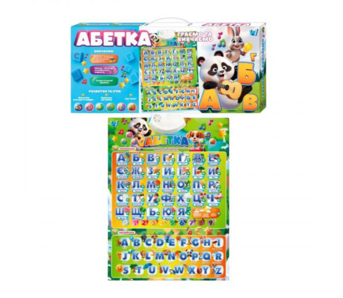 Абетка "Граємо та вивчаємо", ОЗВУЧ. УКР. МОВОЮ, укр. та англ. абетка, кольои, цифри, іспит, пісні, казки, вірші, в коробці