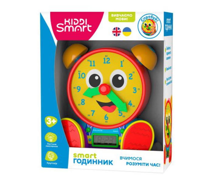 Цікаво, котра година? Це — час розваг! Із веселим Smart-годинником вирушайте у цікаву пригоду, яка познайомить вас із часом. Хвилини, години, цифри та стрілки разом формують певний час, коли можуть відбуватися різні пригоди. Тому, щоб точно не пропустити важливу подію, Smart-годинник допоможе вивчити час в ігровій формі, та ще й двома мовами!