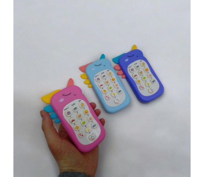 Інтерактивний дитячий телефон у вигляді єдинорога. "Ріг" та "грива" виконані з гуми. Оснащений великою кількістю функцій: