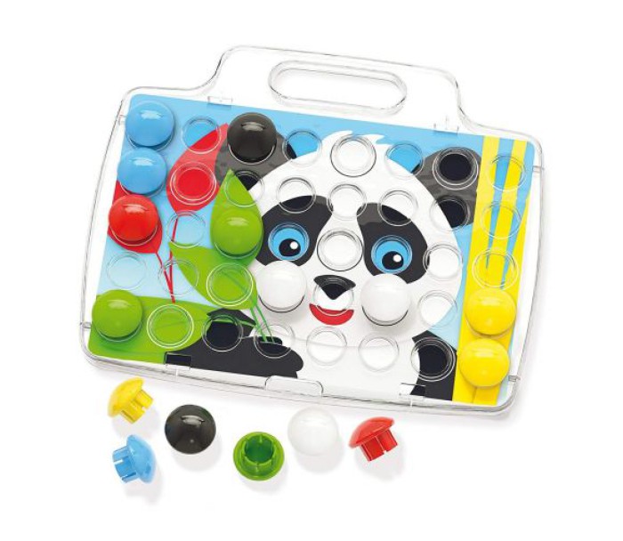 Комплектація: 1. 40 великих фішок; 2. 8 двосторонніх карток; 3. Дошка з ручкою для мозаїки.