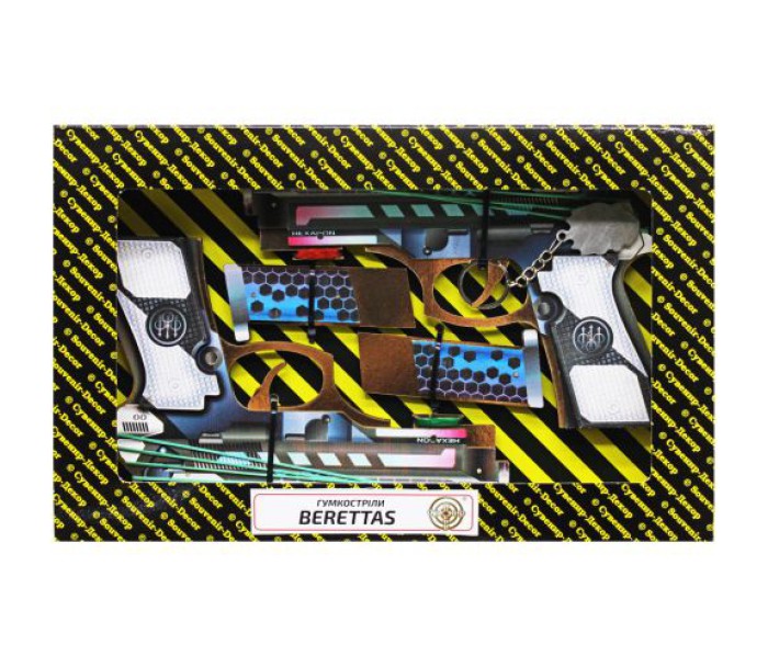 Комплектація: 2 резинкостріли, резинки, 2 магазини, брелок