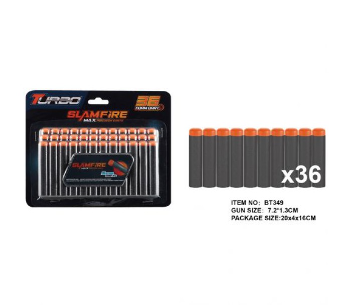 Набір мʼяких набоїв - 36 штук, розміром 7,2 х 1,3 см. Виготовлені з мʼякого спіненого матеріалу, оснащені гумовим наконечником для безпечної гри. Підходять для більшості іграшкових бластерів. Відмінний вибір для активних ігор як удома, так і на вулиці.