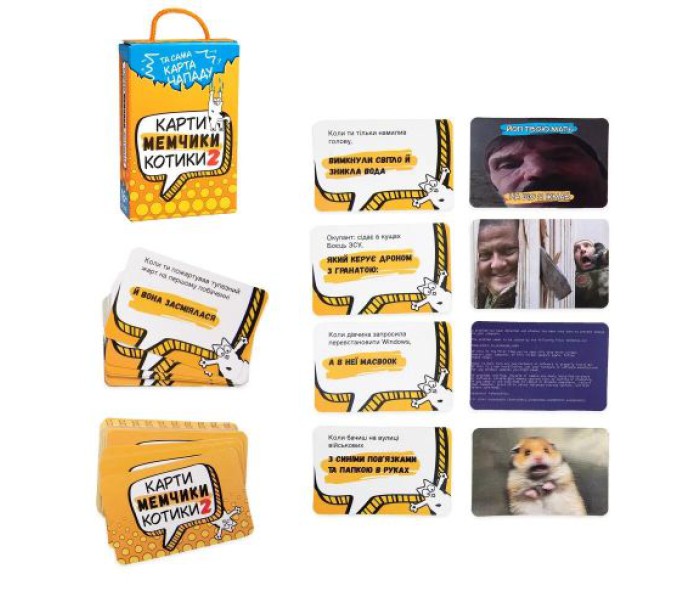 Ви звикли дивитися вже готові меми. А можете створити власні і позмагатися з друзями? Змогли б на завдання "Коли приїхав асвабаждать українців від нацистів, а вони звільнили тебе від потреби дихати" викласти карту з мемом, який змусить ваших друзів волати так, щоб почули на Марсі? Перевірте це у грі "Карти, мемчики та котики".