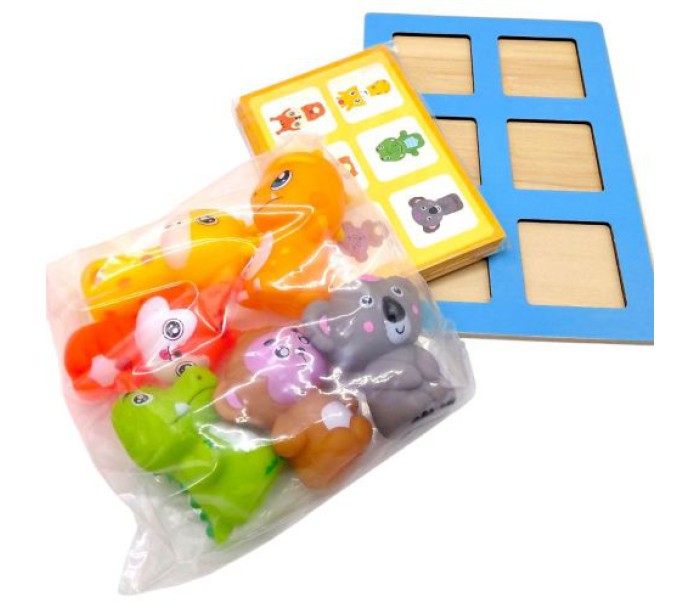 Логічна гра (деревʼяна дошка 18х12.5 см, гумові фігурки тваринок, двосторонні картки із комбінаціями тваринок) в коробці 20х6х15 см