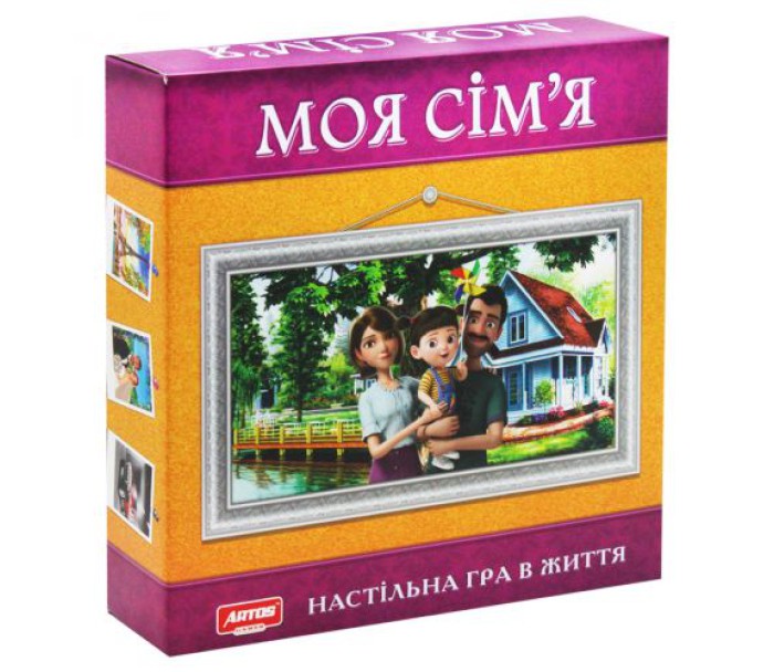 Настільна гра "Моя сім'я". У грі діти зіткнуться з багатьма ситуаціями, які существут в дорослому житті. Вони будуть виходити заміж, сваритися і миритися з чоловіками, виховувати дітей, працювати, ходити в магазини і т.д. В коробці.