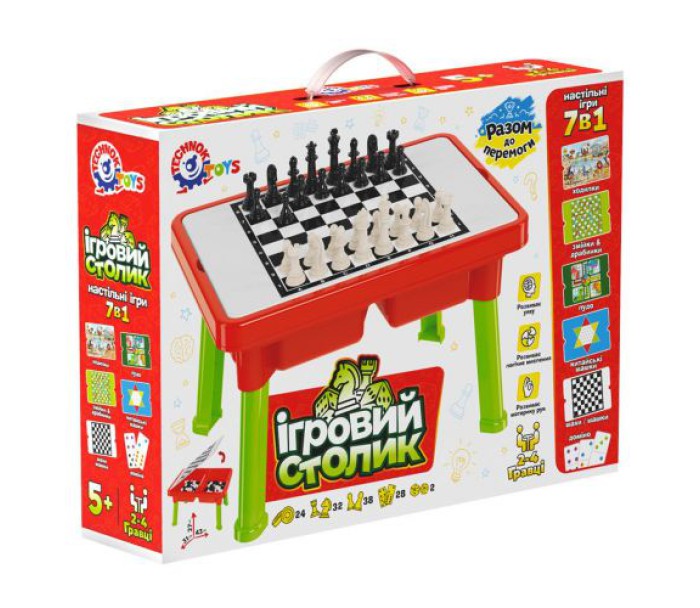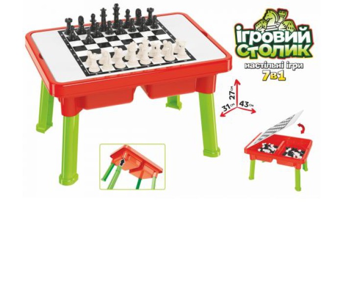 Набір з дитячим столиком-органайзером. Складається із кількох частин. Під стільницею є місце для настільних ігор чи інших дрібниць. 7 ігор у комплекті: