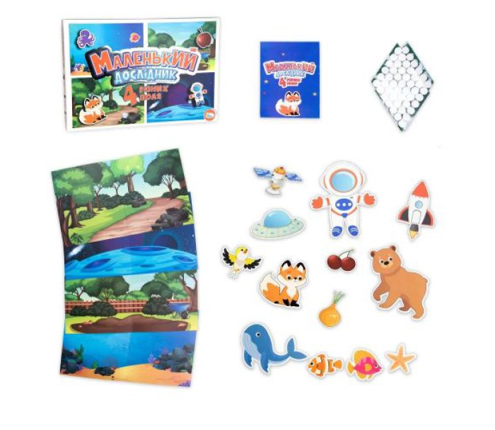 Допоможіть своєму малюкові урізноманітнити дозвілля та вивчити щось нове просто граючи. Для цьому у вашому розпорядженні цей дивовижний набір. Дитині потрібно буде розрізняти, до якого поля підходить кожна фігурка та приклеювати її на своє місце. Розкладіть всі поля, нехай дитина їх уважно роздивиться. Після цього запропонуйте дитині взяти фігурки та подумати, до якого поля кожна з них відноситься. Або дайте дитині можливість пофантазувати та придумати власні правила до гри.