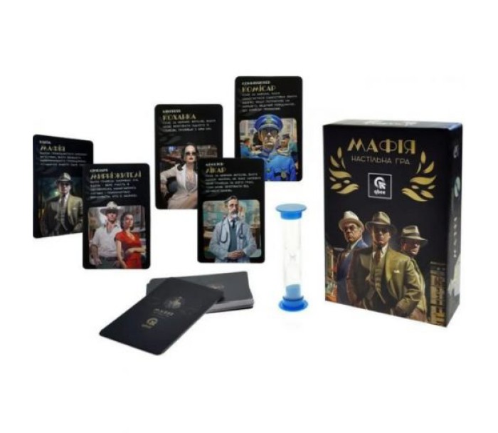 Мафія – захоплива настільна гра, в якій гравці занурюються в атмосферу інтриг та змов. Кожен учасник отримує роль: мирний житель, мафіозі чи інші особливі персонажі. Мета мафії – вбивати мирних жителів уночі, а ціль мирних – знайти та знищити мафіозі. Пісочний годинник у комплекті.