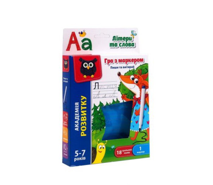 Розвиваюча гра "Пиши і витирай" складається з 18-ти карток (16 х 11 см) з прописами і маркера з губкою, яким можна писати на картках, а потім прати і писати заново. Розвиває інтелект, мислення і дрібну моторику.