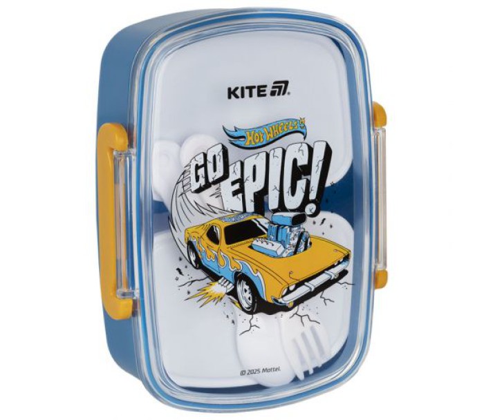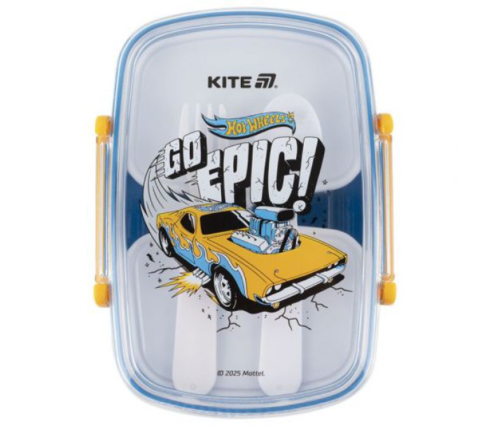 Ланчбокс Kite зроблений з харчового пластику. Бокс призначений для зберігання ланчу дитини. Дитячий ланчбокс легкий і компактний, його зручно брати в дитячий садок, школу, на прогулянку. Ланчбокс містить 2 окремі ємності, які закриваються; містить пластикову ложку та виделку. Він щільно закривається і не протікає. Дитячий ланчбокс також можна використовувати як лоток для зберігання їжі в холодильнику. Яскравий малюнок з улюбленим героєм на кришці ланчбоксу робить його бажаним для кожної дитини. Об'єм 750 мл.
