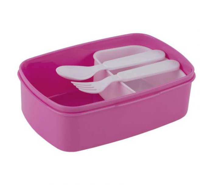 Ланчбокс додатково містить пластикову ложку, виделку та невелику ємність. Дитячий ланчбокс також можна використовувати як лоток для зберігання їжі в холодильнику.