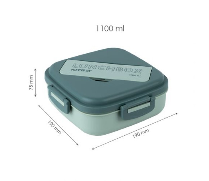 Ланчбокс Kite зроблений з харчового пластику. Бокс призначений для зберігання ланчу. Основа розділена на 3 відділення, доповнений столовим приладдям. Він щільно закривається. Ланчбокс також можна використовувати як лоток для зберігання їжі в холодильнику. Об'єм 1100 мл.