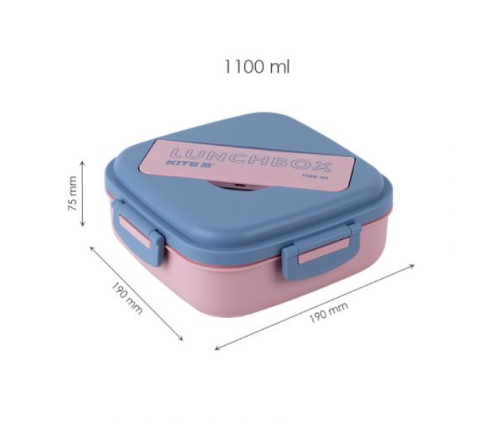 Ланчбокс Kite зроблений з харчового пластику. Бокс призначений для зберігання ланчу. Основа розділена на 3 відділення, доповнений столовим приладдям. Він щільно закривається. Ланчбокс також можна використовувати як лоток для зберігання їжі в холодильнику. Об'єм 1100 мл.