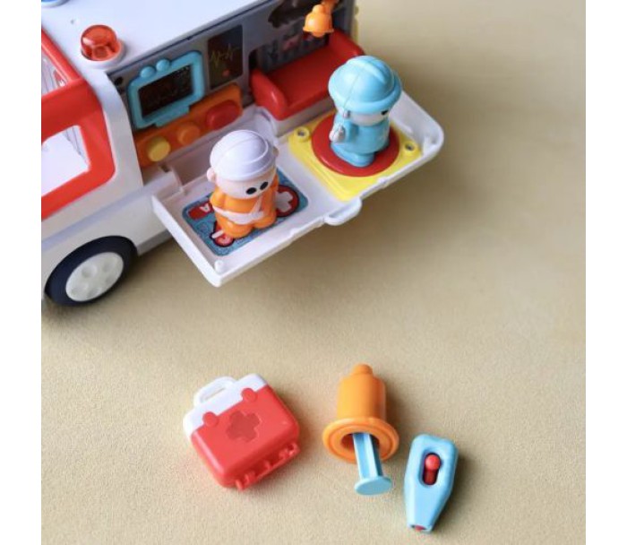 Музична машинка ОЗВУЧУВАННЯ УКРАЇНСЬКОЮ МОВОЮ, "Швидка допомога", пісні, цікаві факти, віршики, підсвічування, сирена, 2 фігурки: пацієнт та лікар, 2 режими гучності, рухомі елементи, в коробці