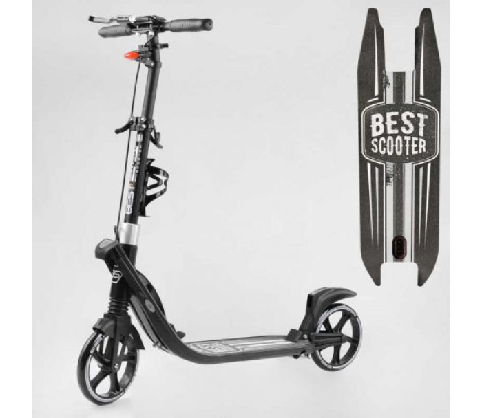 Самокат двоколісний "Best Scooter" (ФАРА, колеса PU 200мм, 2 амортизатори, затискач керма, ручне гальмо, в коробці)