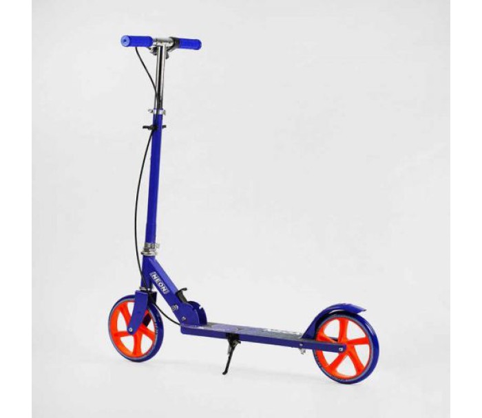 Міцна металева конструкція та поліуретанові колеса легко і безшумно ковзають дорогою, а сталева конструкція здатна витримувати великі навантаження. Конструкція самоката компактна, складана та зручна для перенесення, форма керма - пряма.