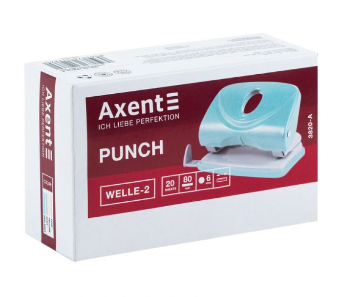 Діркопробивач Axent серії Welle-2 Pastelini виділяється яскравим кольором і ергономічним дизайном рукоятки. Зроблений з якісного ABS-пластику - це сучасний матеріал міцний і легкий, не б'ється при падінні. Всі основні і робочі механізми - металеві, забезпечують надійну роботу діркопробивача. Леза довго залишаються гострими. Для зручності діркопробивач оснащений висувною обмежувальною лінійкою з точною шкалою форматів паперу (А3, А4, А5). Висувна лінійка необхідна для позиціонування аркушів паперу, які вставляються в діркопробивач, і дозволяє завжди отримувати точний результат і однакові стоси підшитих документів зі співпадаючими отворами. Знімний резервуар для конфетті відкривається м'яко. Прогумована підошва запобігає ковзанню діркопробивача по поверхні. Діаметр отвору 6 мм, відстань між пробитими отворами 80 мм.