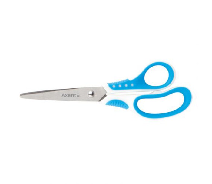 офісні, ножиці, пластиковими, ручками, для, різання, паперу, картону, тканини, якісні, матеріали, збірка, продумані, деталі, офісних, ножиць, axent, комфортну, безпечну, роботу, довговічність, леза, високоякісної, сталі, міцні, стійкі, корозії, потребують, додаткового, заточування, кінчики, лез, закруглені, безпечної, AXENT, 6304-02-A