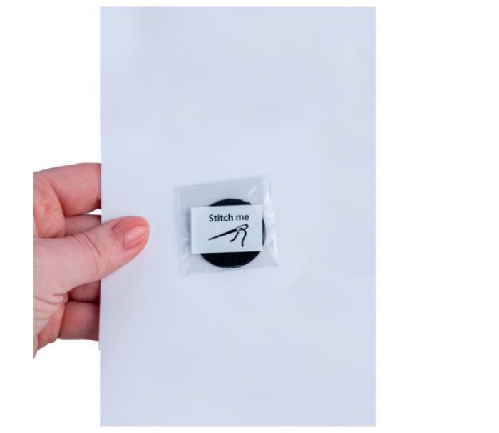 Бейджі на липучці на планшетці, запаковані у картону коробку, розмір бейджів: 7х7х0,5 см, 5,5х5,5*0,3 см, 5,5х5,5х0,5 см