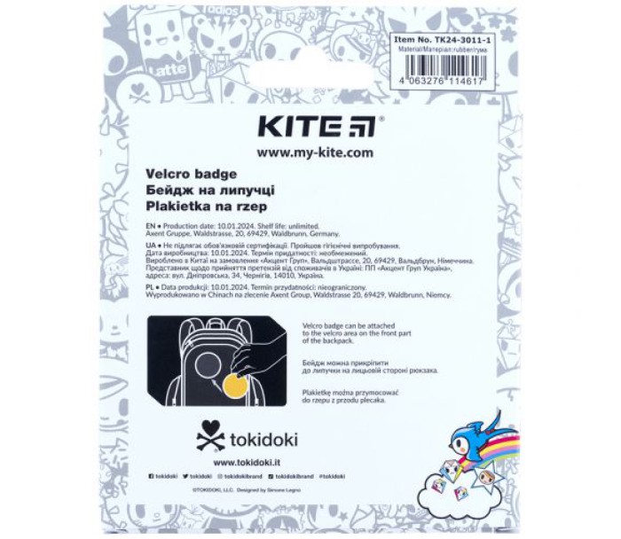 бейдж, липучці, pvc, планшетці, запакований, картонну, коробку, Kite, TK24-3011-1