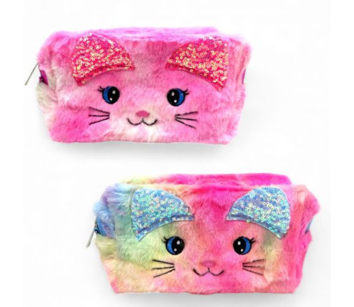 Рожева сумочка-косметичка у вигляді кота. Маленька, але вмістка сумочка, яку зручно брати з собою. Пухнаста, з блискучими вушками. У комплекті є брелок на застібці, який прикрашає сумку. Виготовлена з полімерних матеріалів. Рекомендовано для дітей віком від 3 років.