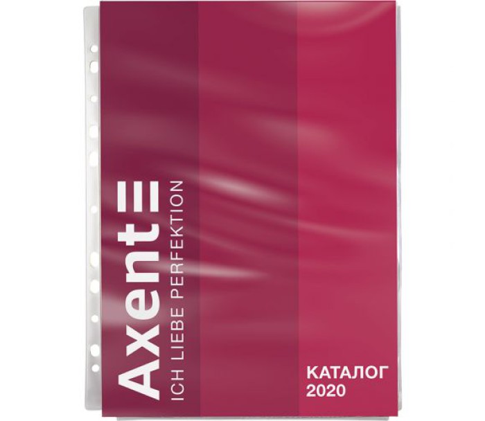 Файли захищають папери від оточуючих впливів і механічних пошкоджень. Завдяки наявності перфорації документи в файлах можуть зберігатися в папках-реєстраторах, в папках на кільцях, в папках-швидкозшивачах та ін. Це забезпечує систематизацію та зручність у роботі з документами. Файл для каталогу Axent виготовлений зі щільного первинного пластику, який забезпечує максимальну прозорість файлу та ідеальну глянцеву поверхню. Щільність 180мкм - дозволяє зберігати об'ємні документи, каталоги, прайс-листи, буклети та ін. Підходить для інтенсивного використання, коли є необхідність постійно діставати документи з файлу. Довговічний, має презентабельний вигляд.
