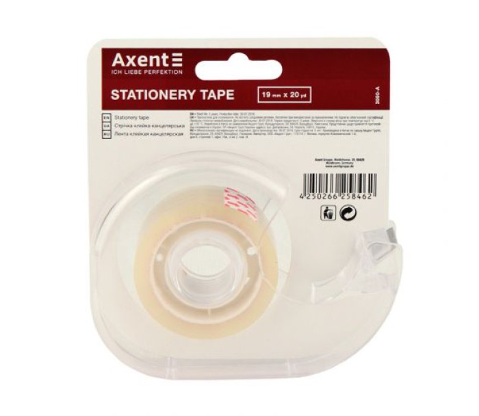 Прозора канцелярська клейка стрічка використовується в офісній, банківській та побутовій сфері для склеювання пошкоджених документів, скріплення сторінок, розклеювання оголошень, захисту написів, виготовлення етикеток, для упаковки подарунків, коробок, пакетів та ін. Стрічка канцелярська Axent має ідеально прозору глянцеву поверхню. Стрічку практично не видно на різних поверхнях. Диспенсер дозволяє максимально акуратно, швидко і без зусиль відрізати потрібну частину стрічки, економить час.